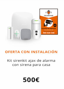 “En Alarmas Murcia disponemos de las mejores ofertas con instalación de kit de Ajax partiendo de 275 € con instalación incluida por un técnico profesional. Nos adaptamos a las necesidades de cada cliente, disponemos de los mejores precios de alarmas con instalación incluida, siendo los mejores precios del mercado, más una sirena Ajax de regalo.”